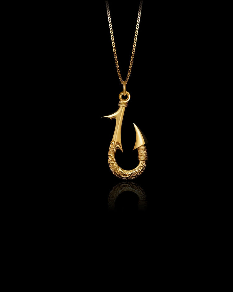 The Hook pendant channels the power of the sea and the wisdom of ancient traditions. Crafted in solid gold, this intricately detailed pendant is inspired by the Polynesian Makau, a timeless symbol of strength, prosperity, and connection to nature. The flowing engravings along the curve of the hook reflect movement, resilience, and purpose.