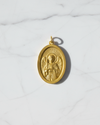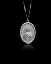 Crafted in solid gold, this pendant honours St Michael the Archangel — the divine protector and warrior of light. Set within an elegant oval frame, the pendant features a relief engraving of St Michael holding a sword and shield, his wings unfurled in quiet strength. A radiant sunburst emanates from behind, adding depth and symbolic clarity. Every detail, from the calm yet commanding expression to the graceful drapery of his robes speaks to his role as a guardian against darkness. A sacred talisman of protection, justice, and courage.