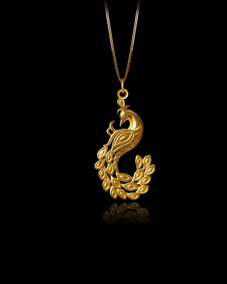 A symbol of beauty and elegance, the Gold Peacock Pendant captures the vibrant essence of this majestic bird. Crafted in solid gold, this pendant features a detailed peacock design, symbolizing grace, renewal, and the expression of individuality.