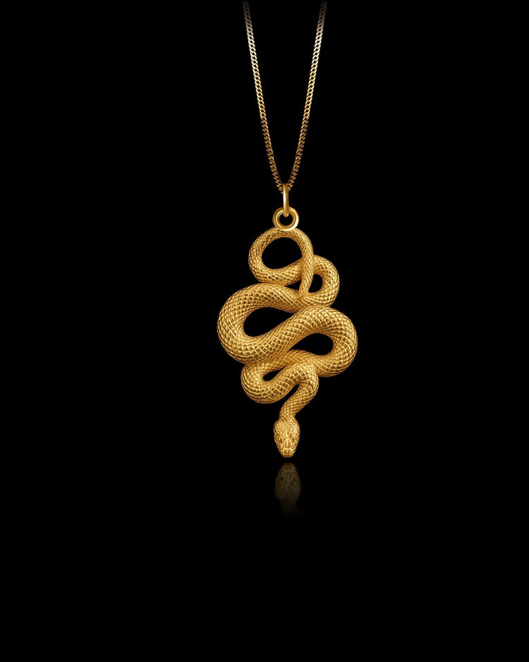 Embrace the power of transformation with the Gold Snake Pendant. Crafted in solid gold, this pendant features a beautifully detailed snake design, symbolizing renewal, wisdom, and resilience. The intricate craftsmanship captures the essence of this enigmatic creature, making it a meaningful accessory for those who appreciate the deeper meanings of life and personal growth.