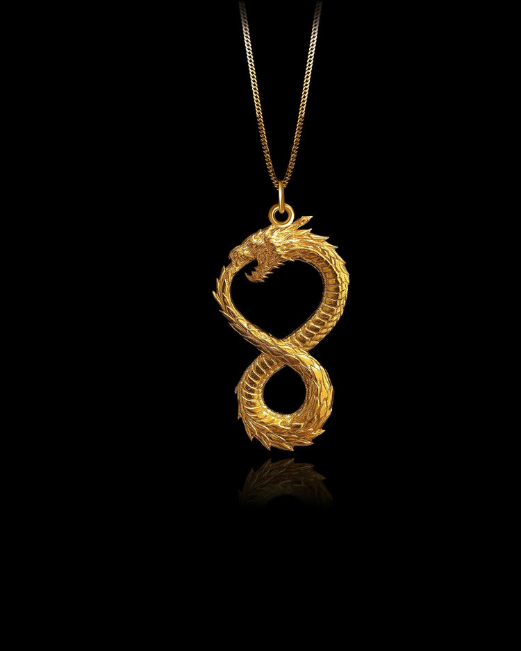 The Dragon pendant embodies strength, wisdom, and transformation. Crafted in solid gold, this intricate design captures the mythical dragon, a symbol of power, protection, and courage. This pendant serves as a meaningful reminder of resilience and the potential for personal growth, making it a unique addition to any collection.