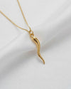 The Italian Horn pendant, also known as the "Cornicello" is a timeless emblem of protection and luck. Crafted in solid gold, its flowing, curved silhouette is both elegant and powerful, representing the ancient Italian symbol meant to ward off the evil eye and invite good fortune. Worn for generations as a talisman of strength and prosperity, this pendant is a sleek yet meaningful piece with deep cultural roots.