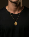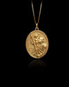 A timeless protector for those on life’s journey, the St Christopher pendant honours the patron saint of travellers. Crafted in solid gold, this round medallion depicts St Christopher carrying the Christ Child across the water, a symbol of strength, faith, and divine guidance. The detailed relief captures a moment of spiritual courage, reminding the wearer of steadfast protection through life’s unknown paths. Both meaningful and elegant, ideal for anyone seeking safety and strength wherever they go.