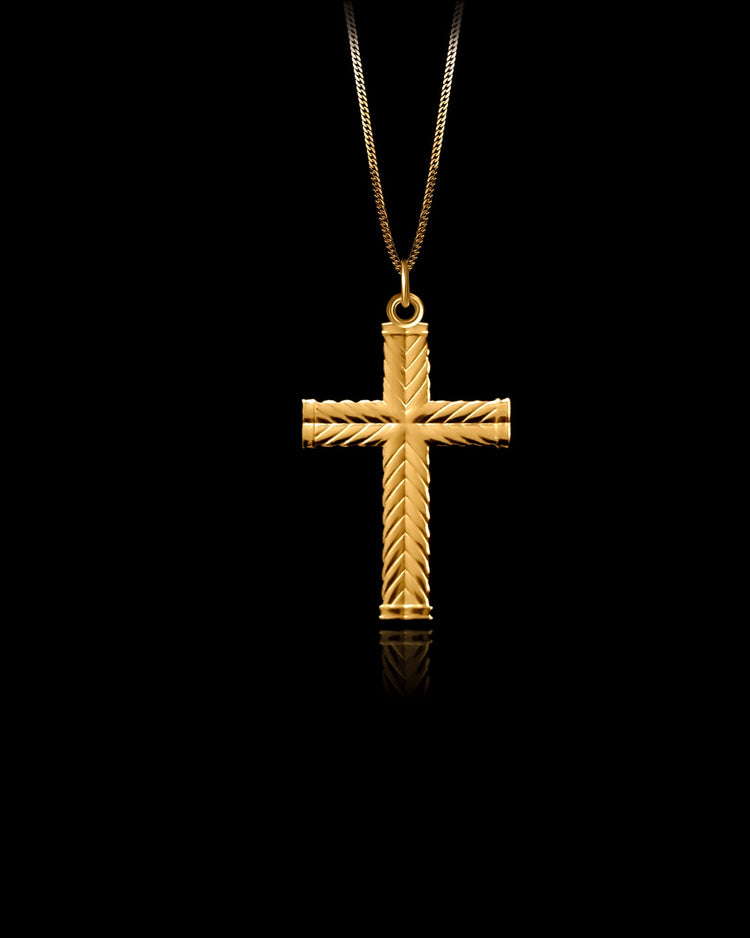 A bold expression of strength and faith, the Gold Arya cross brings a rugged, refined presence to a timeless symbol. Crafted in solid gold, this piece features a unique braided rope texture along the arms of the cross, adding depth, grip, and visual movement while honouring the classic shape with a distinctive edge. Designed for those who live with purpose and stand firm in their convictions, it offers a confident blend of tradition and individuality.