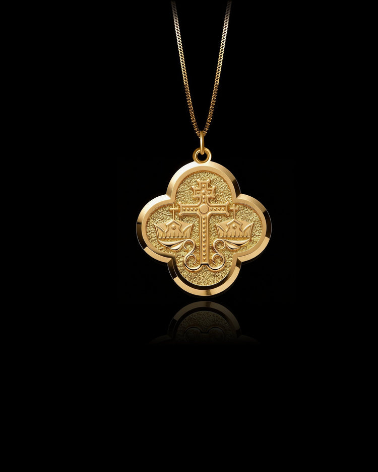 A symbol of divine faith and ancient tradition, the gold Byzantine cross exudes spiritual power and grace. Crafted in solid gold, this pendant features the detailed design of the Byzantine Cross, representing devotion, hope, and the sacred teachings of the Orthodox Christian faith.