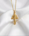 The King cross pendant blends spiritual authority with regal strength. Crafted in solid gold, this pendant features a bold cross crowned with royal detail, symbolizing the divine right to lead with wisdom and unwavering faith. A meaningful piece for those who carry both conviction and confidence, it serves as a reminder that true power is rooted in purpose.