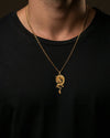 The Gold Dragon pendant embodies strength, wisdom, and transformation. Crafted in solid gold, this intricate design captures the mythical dragon, a symbol of power, protection, and courage. This pendant serves as a meaningful reminder of resilience and the potential for personal growth, making it a unique addition to any collection.