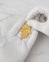 The Hamsa pendant is a timeless emblem of protection, luck, and spiritual defense. Crafted in solid gold, this intricately detailed pendant features the iconic open palm with the all-seeing eye at its center, believed to ward off negativity and bring blessings. Rooted in ancient traditions across cultures, the Hamsa is more than a symbol, it's a shield of intention and strength. A powerful everyday piece with sacred significance.