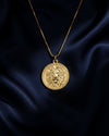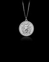 The Lion pendant embodies strength, courage, and noble authority. Crafted in solid gold, this round medallion features a detailed lion's head framed by a classic Greek key border — a symbol of eternal power and protection. With its bold expression and flowing mane, this piece commands presence, making it a powerful statement of leadership and fearlessness.