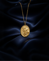 A timeless protector for those on life’s journey, the St Christopher pendant honours the patron saint of travellers. Crafted in solid gold, this round medallion depicts St Christopher carrying the Christ Child across the water — a symbol of strength, faith, and divine guidance. The detailed relief captures a moment of spiritual courage, reminding the wearer of steadfast protection through life’s unknown paths. Both meaningful and elegant, ideal for anyone seeking safety and strength wherever they go.