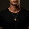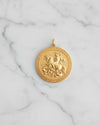 The St George Pendant captures the legendary triumph of courage over darkness. Crafted in solid gold, this round medallion features St George mounted on horseback, vanquishing the dragon beneath him — an enduring emblem of bravery, righteousness, and divine protection. Encircled by a classical border, the design balances strength with timeless elegance. A powerful statement for those who stand boldly for what is right, this pendant is a symbol of fearless conviction and spiritual valour.