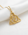 The Celtic Knot pendant merges two powerful symbols into one elegant form. Crafted in solid gold, this design features a serpent gracefully entwined with the ancient Triquetra, a Celtic knot representing eternal life, interconnectedness, and the threefold cycle of nature. The snake, an emblem of transformation and renewal, wraps seamlessly through the loops of the knot, creating a bold emblem of endless growth, unity, and personal evolution.
