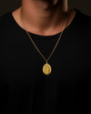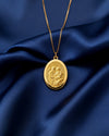 A timeless tribute to wisdom, faith, and divine guidance, the St Matthew pendant captures a sacred moment of spiritual instruction and devotion. Crafted in solid gold, this oval medal features a finely detailed relief of St Matthew framed by radiant lines that symbolize divine light and enlightenment.