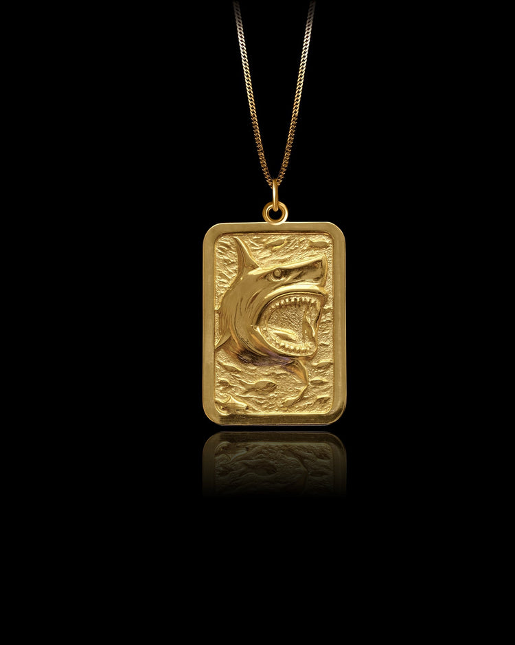 Embrace the power of the ocean with the shark pendant. Crafted in solid gold, this pendant features a striking shark design, symbolizing strength, courage, and resilience. The intricate craftsmanship captures the essence of this formidable creature, making it a meaningful accessory for those who admire the wild spirit of the sea and the adventures it represents.