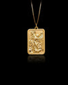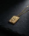 The Gold St Michael pendant depicts the mighty Archangel Michael in a commanding pose, sword raised, wings outstretched, and evil vanquished beneath his feet. Crafted in solid gold and framed in a clean rectangular silhouette, this pendant symbolizes divine strength, justice, and unwavering protection. The high-relief detailing captures the power and grace of St Michael as heaven’s warrior, making this a bold and meaningful statement piece for those who walk with purpose and courage.
