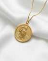 A timeless protector for those on life’s journey, the St Christopher pendant honours the patron saint of travellers. Crafted in solid gold, this round medallion depicts St Christopher carrying the Christ Child across the water — a symbol of strength, faith, and divine guidance. The detailed relief captures a moment of spiritual courage, reminding the wearer of steadfast protection through life’s unknown paths. Both meaningful and elegant, ideal for anyone seeking safety and strength wherever they go.