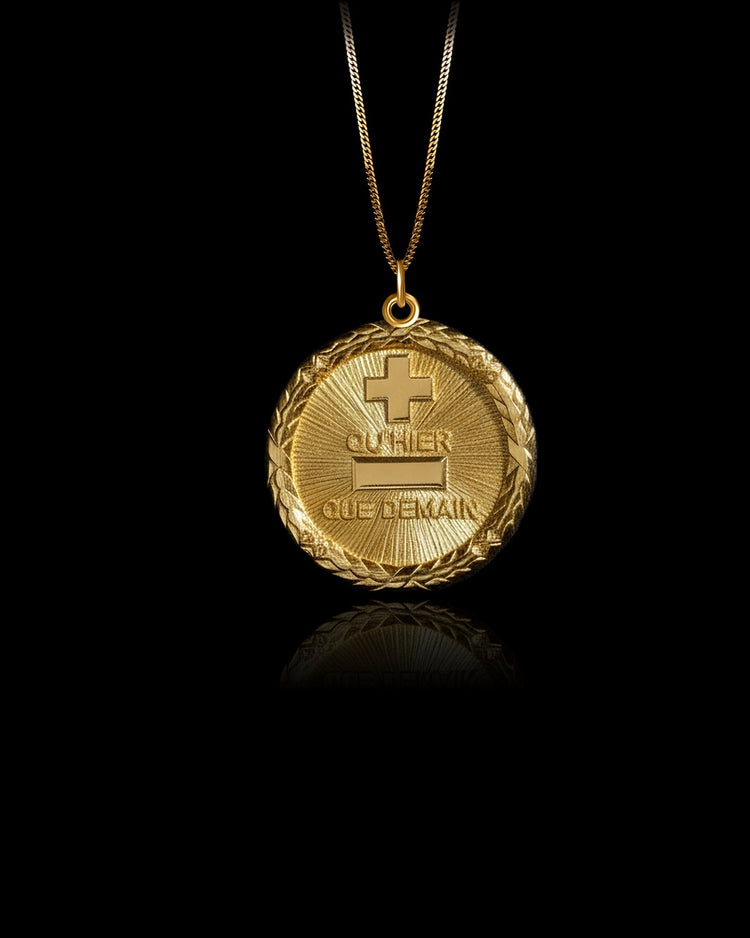 The Gold "+ Qu Hier - Que Demain" pendant symbolizes the fluidity of time, the connection between past, present, and future. Crafted in solid gold, this pendant features a unique design that encapsulates the idea of continuity, progress, and reflection on life’s journey. A meaningful piece for those who embrace the cyclical nature of time, it serves as a reminder that both yesterday and tomorrow shape who we are today.