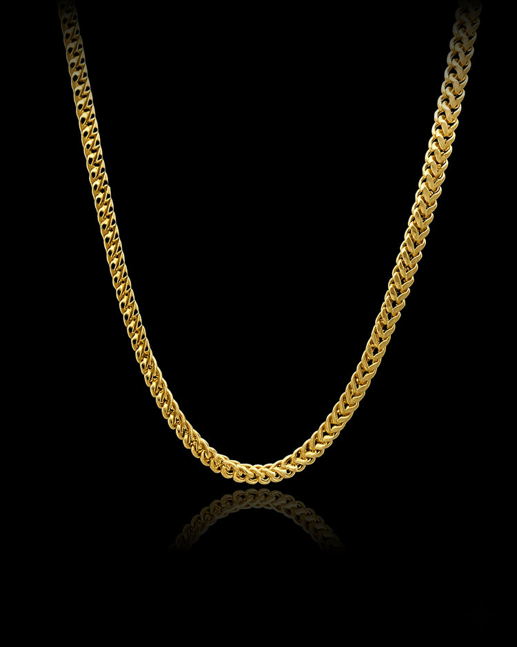 Introducing the light version of our Gold Wheat chain, a symbol of refined strength and fluid design. Crafted in solid gold, this chain features intricately woven links resembling stalks of wheat, creating a smooth, flexible texture with subtle brilliance. Available in multiple widths and lengths, it’s perfect for wearing alone as a sleek statement or paired with a pendant for added distinction. Built to endure a lifetime, the Wheat Chain combines timeless craftsmanship with elegant versatility.