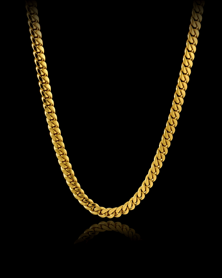 Crafted in solid gold, the Miami Cuban Chain is built for daily wear and lasting presence. Each link is tightly interlocked and finished to a smooth, high-polish shine, giving the chain a balanced weight and refined strength you feel immediately. Designed to pair seamlessly with your pendant or stand strong on its own, it delivers durability, polish, and everyday versatility.