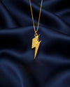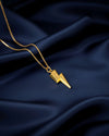 The Lightning Bolt pendant strikes with bold energy. Crafted in solid gold, this sharp, angular form captures the raw force of nature and symbolizes power, transformation, and unstoppable momentum. Intricate etching within the bolt evokes the crackling surge of electricity — an emblem of both destruction and illumination. Whether worn as a symbol of inner strength or a nod to mythic forces like Zeus or Thor, this piece is designed for those who move boldly and act with purpose.