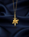 The Rose Dagger pendant unites two powerful forces — beauty and resilience. Crafted in solid gold, this pendant features a delicate rose in full bloom pierced by a finely detailed dagger, symbolizing love’s strength and the duality of passion and protection. The textured leaves and blade add dimension and depth, creating a piece that’s both bold and poetic. Wear it as a statement of fierce devotion or as a reminder of the courage that lies beneath tenderness.