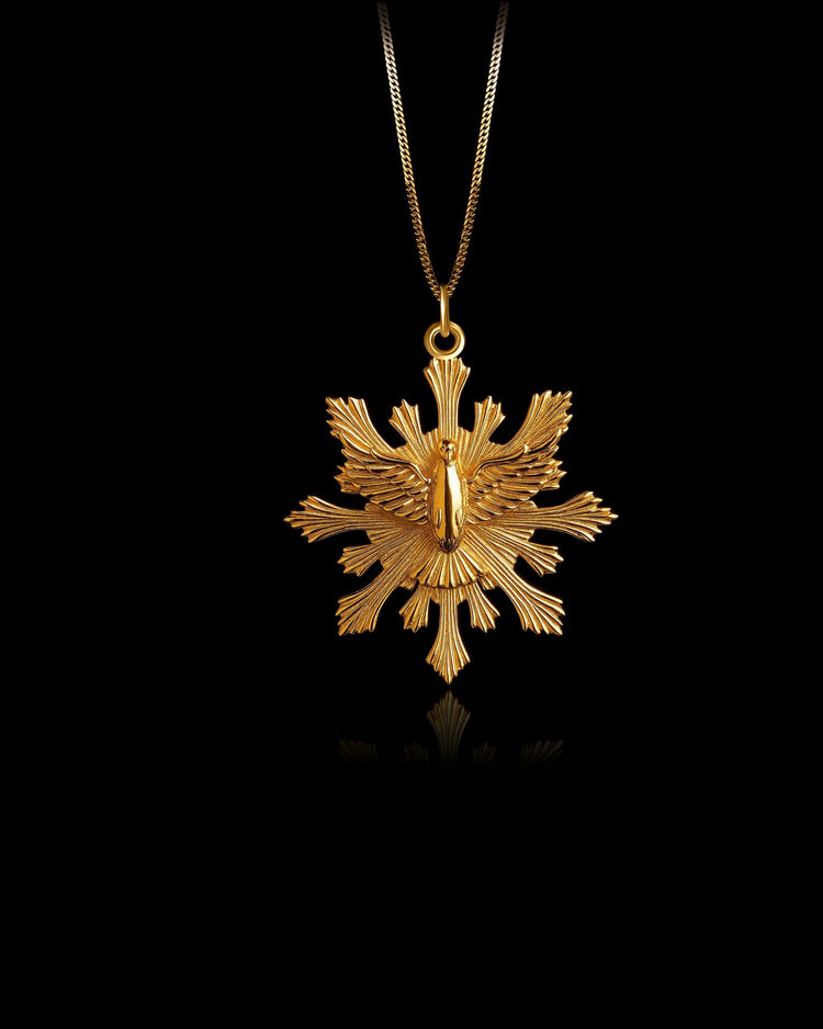 The Dove pendant symbolizes peace, purity, and love. Crafted in solid gold, this pendant features a delicate dove design, representing hope, serenity, and spirit. A meaningful piece for those who seek inner peace and wish to carry the symbol of love and unity wherever they go.