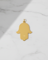 The Hamsa pendant is a timeless emblem of protection, luck, and spiritual defense. Crafted in solid gold, this intricately detailed pendant features the iconic open palm with the all-seeing eye at its center, believed to ward off negativity and bring blessings. Rooted in ancient traditions across cultures, the Hamsa is more than a symbol, it's a shield of intention and strength. A powerful everyday piece with sacred significance.