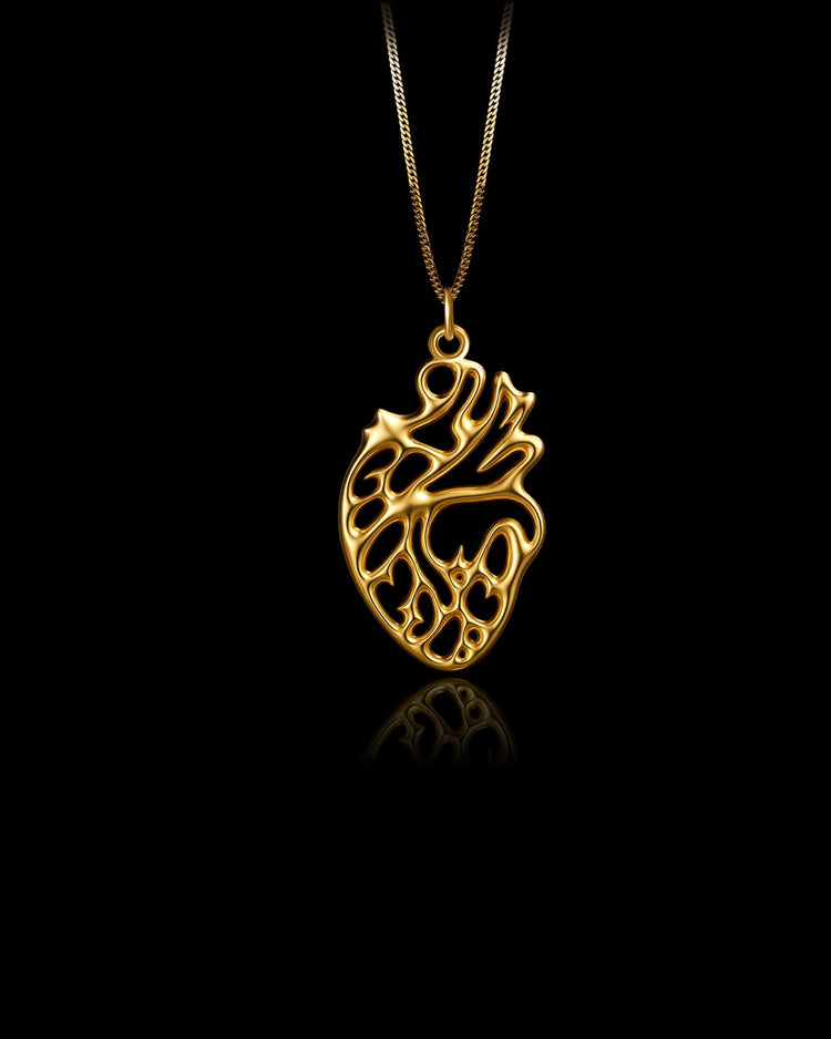The Heart pendant captures the essence of human emotion and vitality in a striking openwork design. Crafted in solid gold, its flowing structure reflects the intricate beauty of the human heart: raw, organic, and alive. A symbol of deep emotion, passion, and strength, this pendant is for those who wear their heart not just on their sleeve, but boldly on their chest.