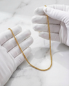 The Gold Wheat Chain is a symbol of refined strength and fluid design. Crafted in solid gold, this chain features intricately woven links resembling stalks of wheat, creating a smooth, flexible texture with subtle brilliance. Available in multiple widths and lengths, it’s perfect for wearing alone as a sleek statement or paired with a pendant for added distinction. Built to endure a lifetime, the Wheat Chain combines timeless craftsmanship with elegant versatility.