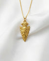 The Arrowhead pendant captures a raw and powerful aesthetic, inspired by ancient tools of precision and survival. Crafted in solid gold, the pendant features a rugged arrowhead form with textured, stone-like surfaces where the uneven carved edges create depth and contrast, giving the design an authentic and organic feel.