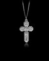 A tribute to deep spiritual devotion, the Orthodox Cross is crafted in solid gold and features a striking double-sided design. On the front, the Virgin Mary is depicted in serene relief at the center, surrounded by angelic figures and sacred icons, radiating peace and divine intercession. On the reverse, Christ is shown with traditional inscriptions, evoking themes of sacrifice, redemption, and eternal hope. The ornate edges and bevelled arms of the cross give it a distinct Byzantine influence, while the rich relief work highlights each figure with remarkable precision. The cross's balanced proportions and powerful presence make it not only a devotional piece but also a timeless heirloom.