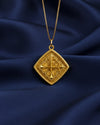 The Maltese Cross is a bold expression of direction, faith, and fortitude. Crafted in solid gold, this pendant features a stylized Maltese cross set within a diamond-shaped frame, radiating strength with every line and curve. The symmetrical clover-like design, flanked by sharp arrow points and bordered by rays, evokes a sense of sacred geometry and alignment. Worn as a symbol of purpose, balance, and divine protection, this piece speaks to those who walk with conviction and clarity. A powerful addition to any collection.