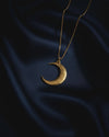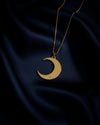 The Crescent moon pendant channels the mystery and magic of the night sky. Crafted in solid gold with a richly textured surface that mimics the moon’s cratered face, this celestial piece captures the quiet strength and beauty of lunar energy. A timeless symbol of intuition, transformation, and feminine power, this pendant evokes a sense of wonder — perfect for those who walk their own path guided by starlight and soul. A statement of cosmic elegance and personal meaning.