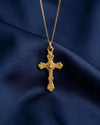 A symbol of divine majesty and sacred devotion, the Gold Baroque Cross Pendant embodies the elegance and grandeur of classical faith. Crafted in solid gold, this piece features intricate scrollwork, raised floral accents, and rich architectural detailing — echoing the opulence of old-world cathedrals and baroque ornamentation. Every contour reflects reverence and refined artistry. Perfect for those who carry their faith with grace and strength, it brings a commanding yet graceful presence to any collection.